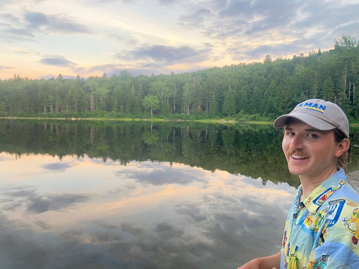 Rained on while camping again!!! This time the rain didn’t arrive until further into the night, but boy did it arrive. I passed out early after we watched a beautiful sunset over the pond so I’m writing this from inside my tent at 5:30am (my typical wake up time). The rain has stopped, but it’s still dripping from the trees all around. My bike bags are probably soaked. Life.
